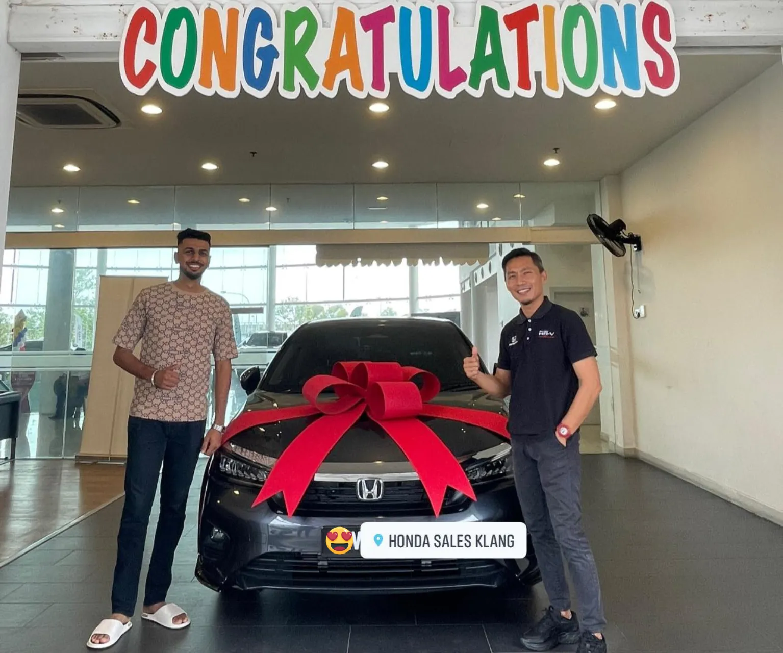 Sales Advisor Honda Klang berpengalaman lebih 5 tahun dalam urusan jualan kereta Honda. Jika permohonan pinjaman anda diluluskan, anda boleh pergi ke bank terdekat untuk menandatangani perjanjian. Lokasi penghantaran kenderaan terpulang kepada anda.